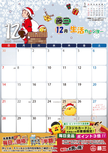 2025年12月の生活カレンダーを掲載しました