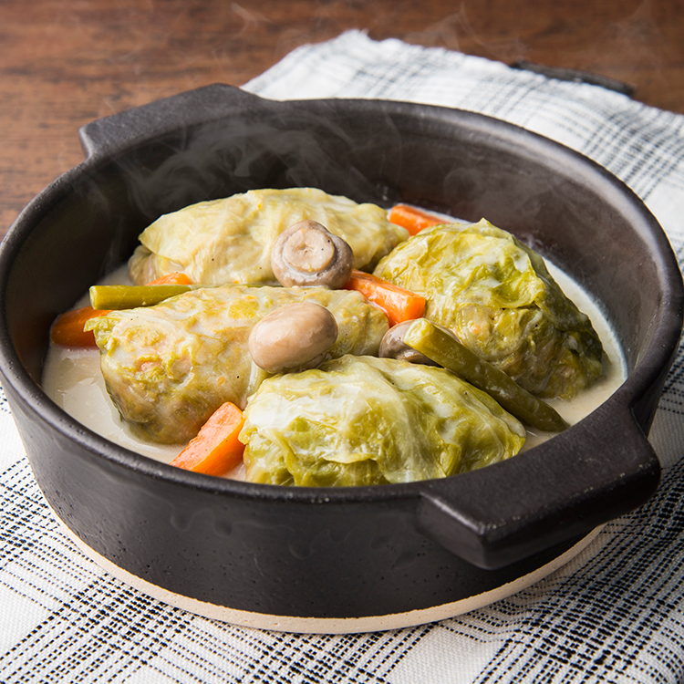 - 鍋に3を並べBと、にんじん・マッシュルームも加え強火で加熱する。沸騰したら弱火にして、20~25分煮込む。牛乳を加えて塩・こしょうで味を整えて仕上げる。