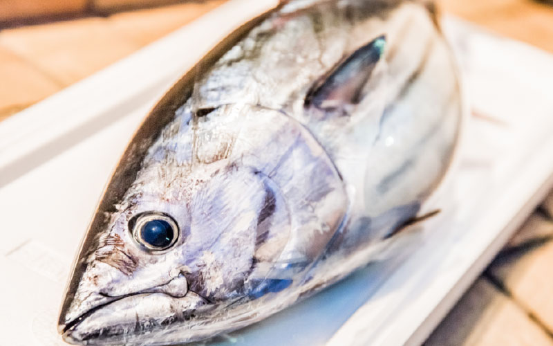 1本釣りされ、船上で瞬間冷凍されたかつおを竹炭で一気に香ばしく焼き上げています。だから鮮度そのままモッチモチ!